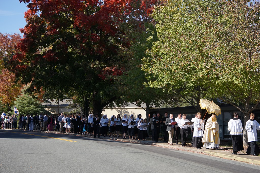 A record crowd of 340 people attended Mass and the Procession today and it was this weekend’s highest attended Mass. We also had visitors from as far two hours away – a remarkable sign of faith of how many and how far people will come to honor Christ’s Kingship.