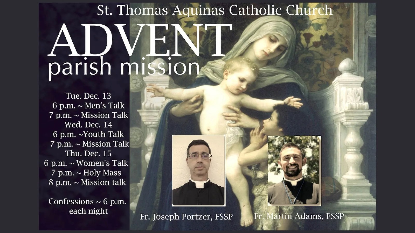 December 13-15: Advent Mission with Fraternity of St. Peter (FSSP) Priests (St. Thomas Aquinas parish)