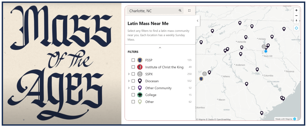 Sunday Latin Mass Options in the Charlotte area (ordered by distance):