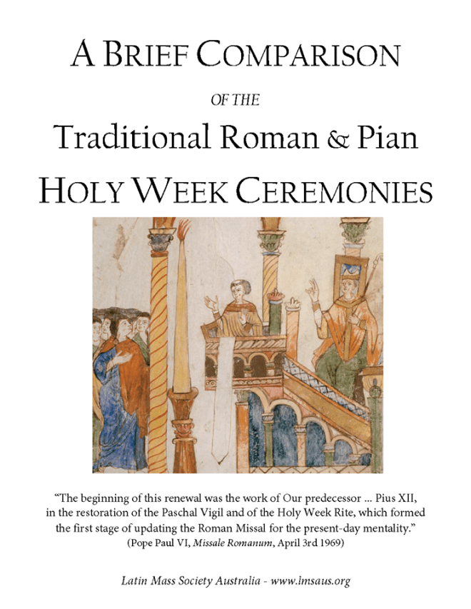 - To learn more about the Pre-1955 Holy Week Rites and download the booklets for the liturgies and the Matins and Lauds (Tenebre) visit: https://www.pre1955holyweek.com/for-the-faithful